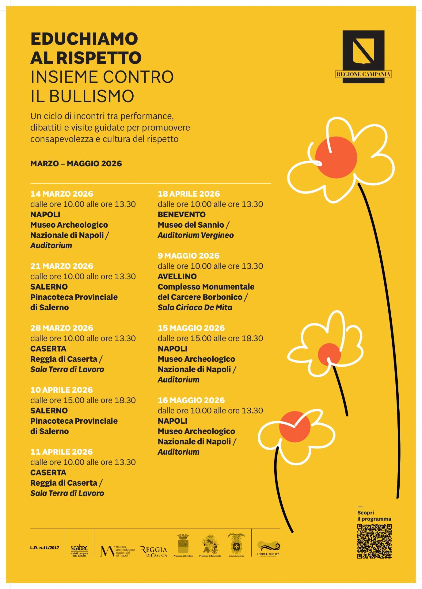 Nell'ambito del progetto regionale “Prevenzione e contrasto al fenomeno del Bullismo e Cyberbullismo” (LR n.11/2017), la Regione Campania attraverso Scabec presenta un ciclo di nove incontri performativi di sensibilizzazione rivolti alle famiglie e alla rete educativa degli studenti delle Scuole Secondarie di primo e secondo grado della Campania.